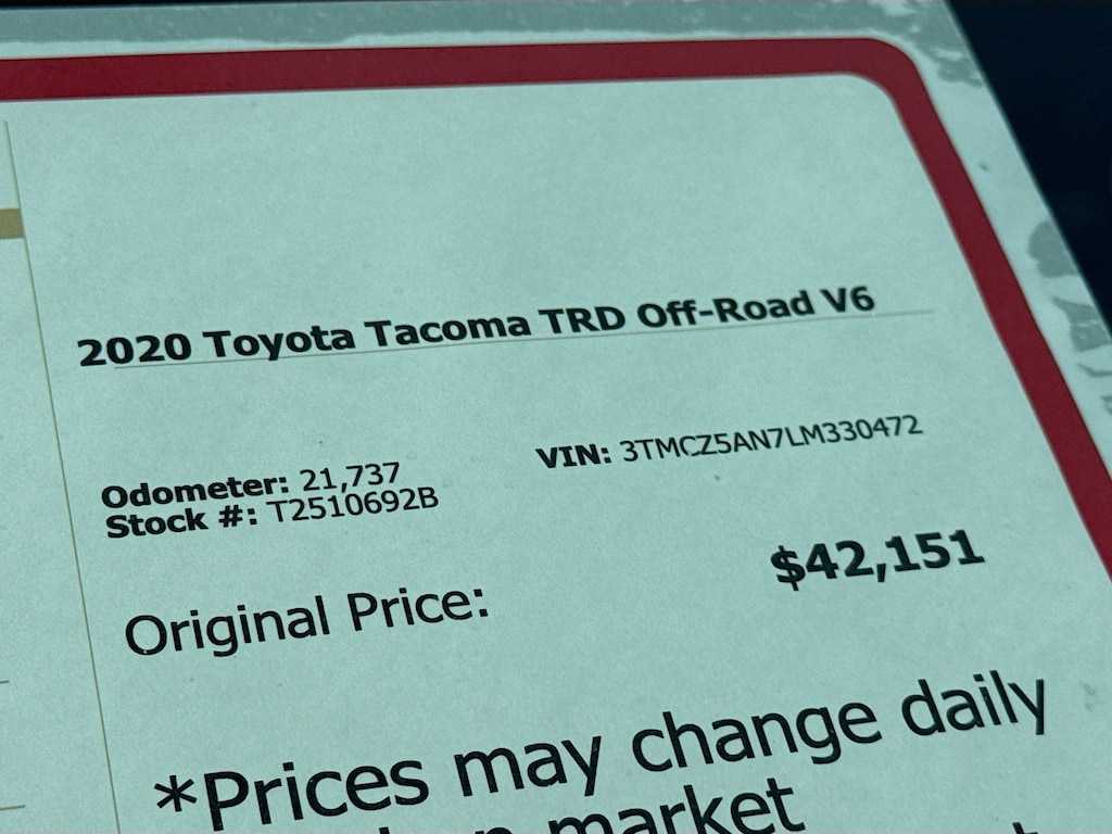2020 Toyota Tacoma TRD Off-Road V6 This vehicle is brought to you by Dolan Toyota located in Reno, Nevada and is available for immediate delivery.
